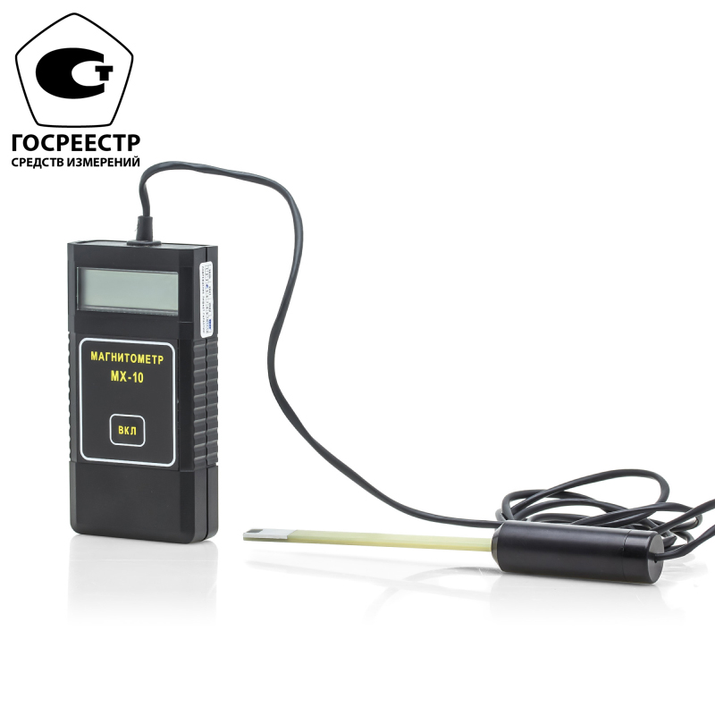 Магнитометр МХ-10 представляет собой электронный измерительный блок с выносным измерительным преобразователем, в основе работы которого лежит эффект Холла. Конструкция прибора позволяет измерять как нормальную, так и тангенциальную составляющую вектора магнитной индукции непосредственно на поверхности детали. Измеренное значение величины индукции магнитного поля выводится на цифровой индикатор электронного блока.